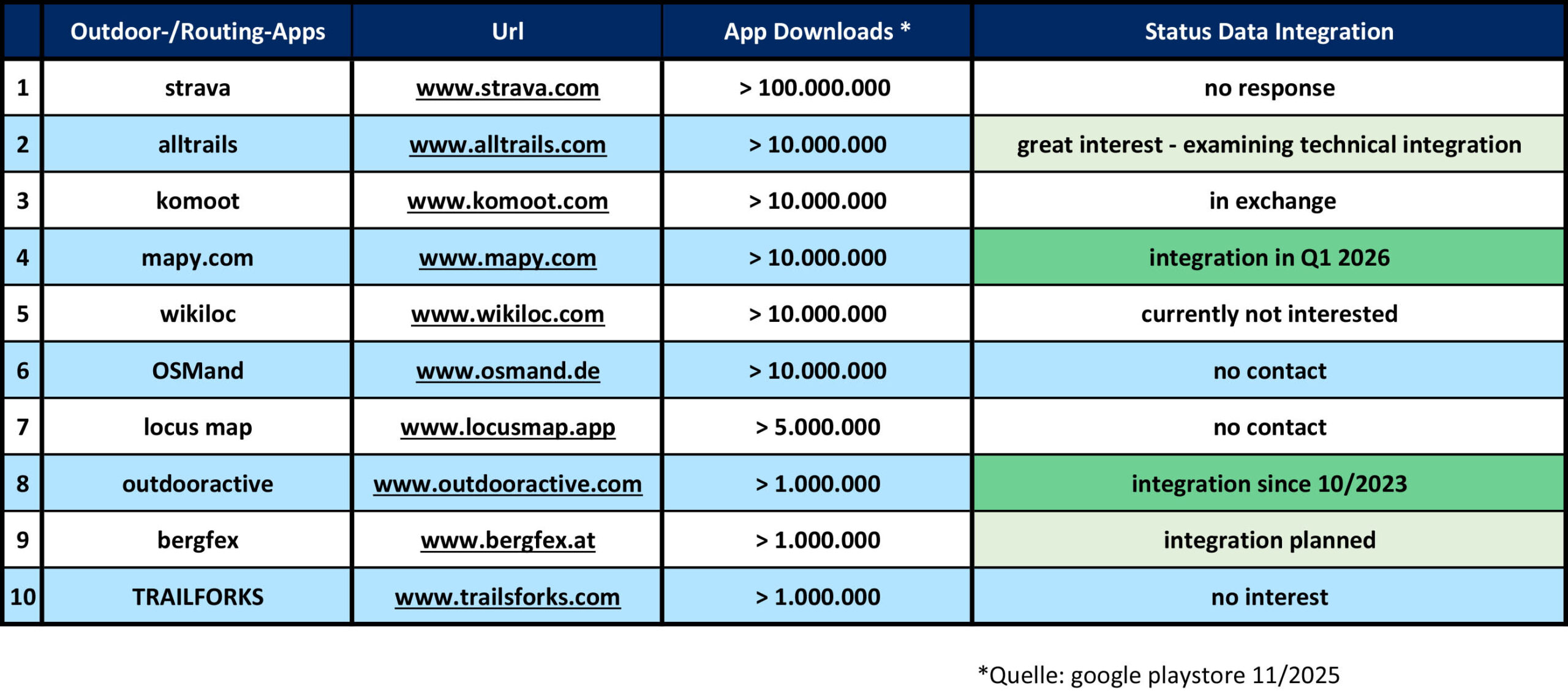 The app is one of the top 10 outdoor/routing apps worldwide and will help the association to further expand its project in Europe.